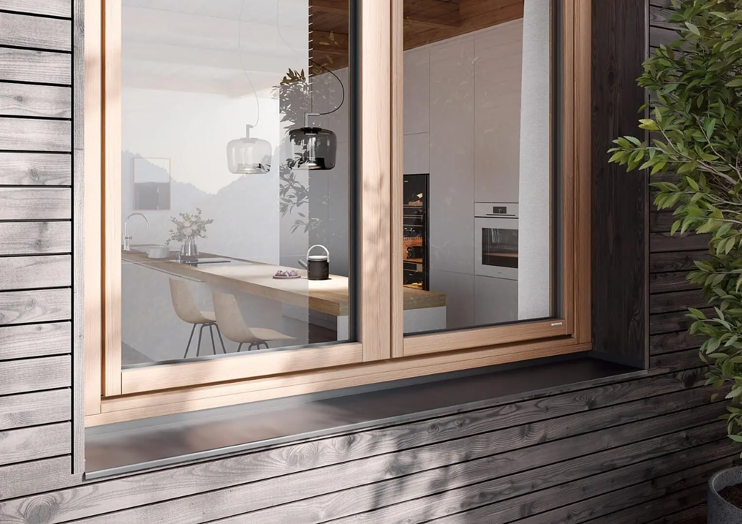 Innen edles Holz für Wohnbehaglichkeit, außen eine robuste Aluminium-Schale für maximalen Witterungsschutz.
