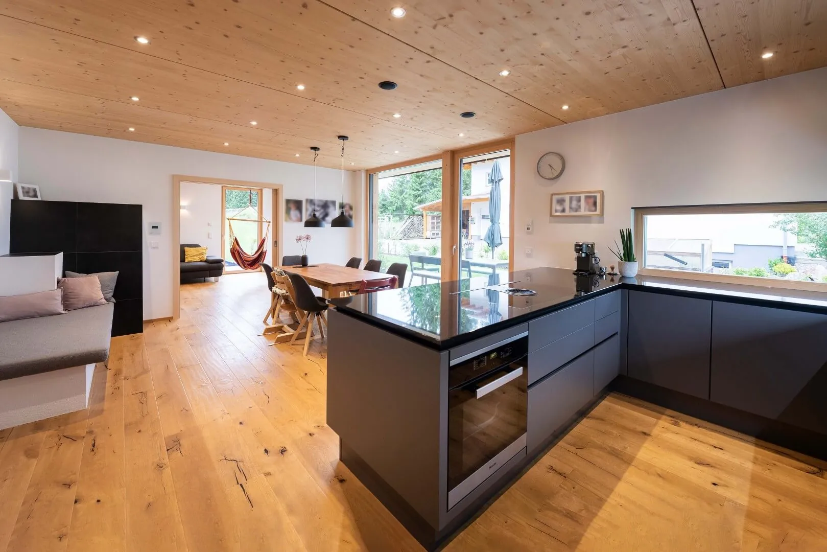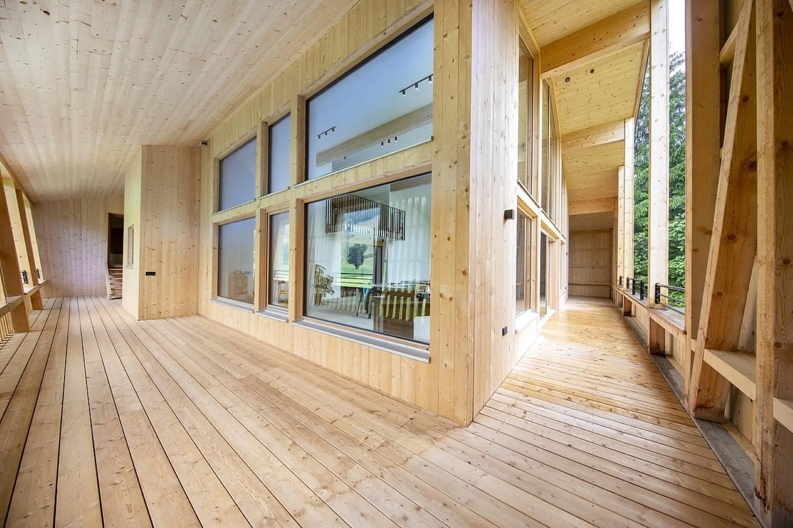 Holz als nachwachsender Rohstoff bietet zudem eine positive CO₂-Bilanz, kurze Transportwege und hervorragende Dämmeigenschaften.