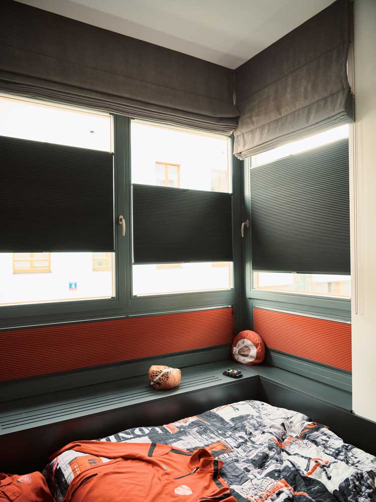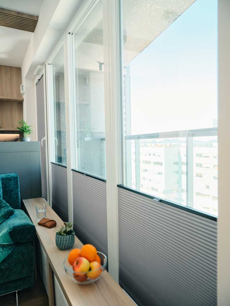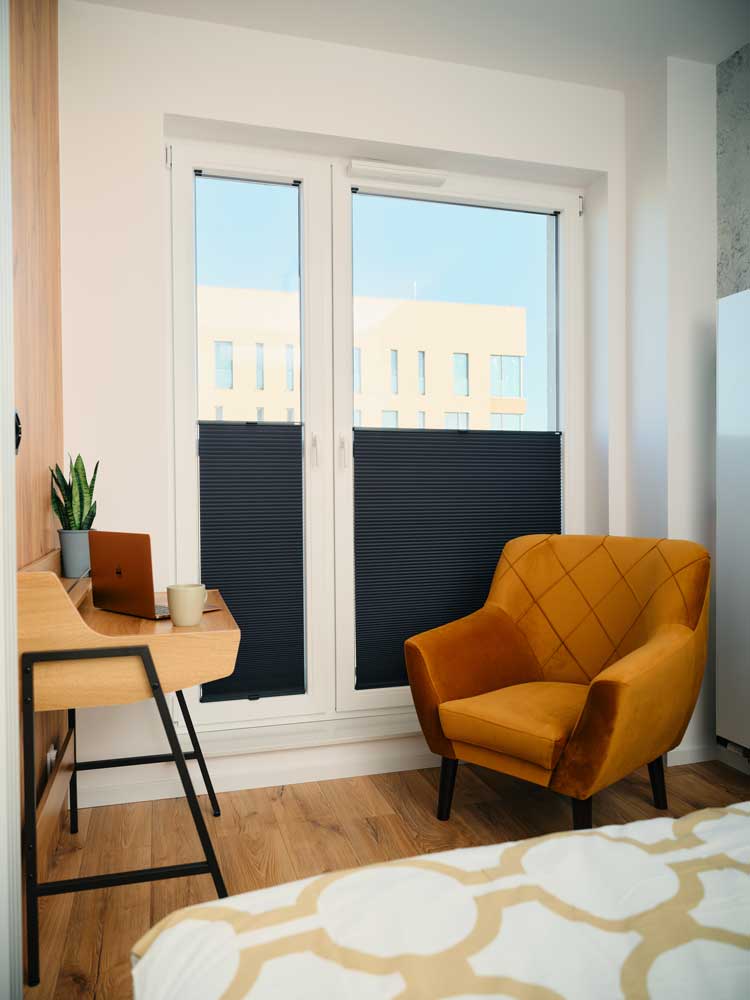 Mithilfe von Plissees kann das Tageslicht individuell dosiert und somit das Raumklima regulieren werden.